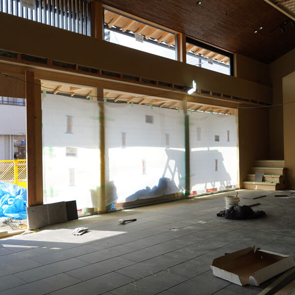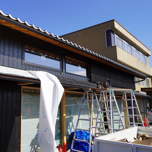 千紀園本店では新しい店舗建設のための工事が進行中です。