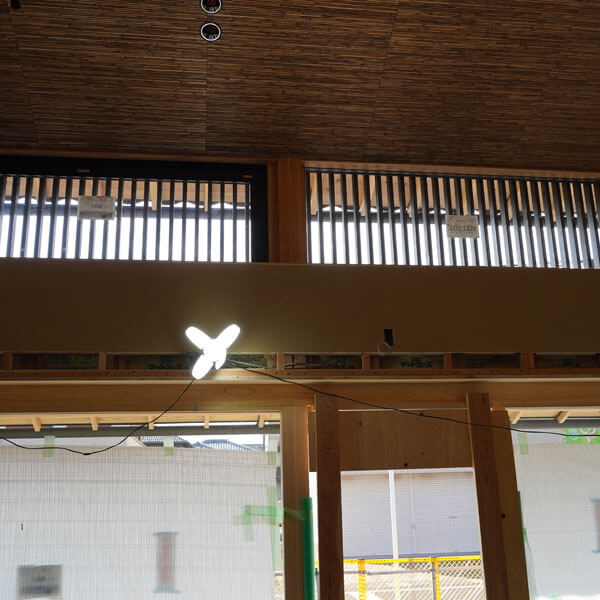 1月21日、大工さんが朝からその格子を2階の窓部分に取り付けておられました。