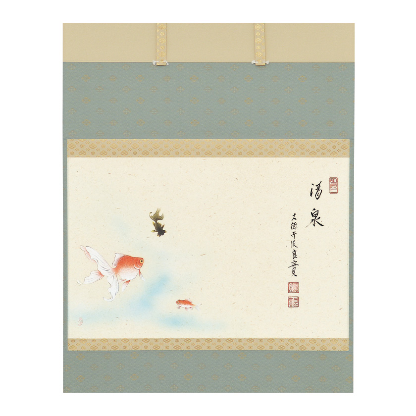 | 作家・作品名 | 小堀良實師 京都 宝林寺・上村久志画・軸横物画賛 金魚の図 「清泉」 |