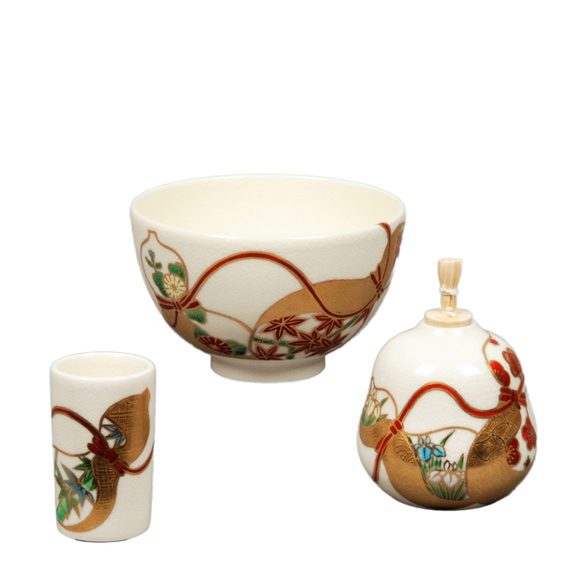 作家・作品名善高・陶器三点セット(茶碗・振出・茶巾筒) 仁清 瓢箪