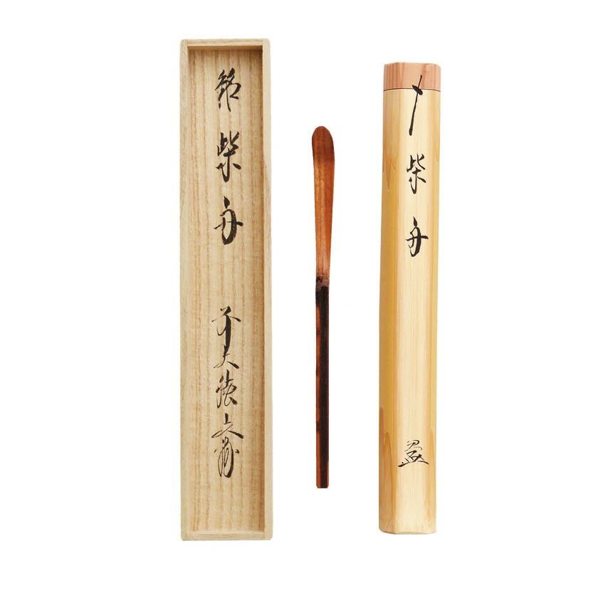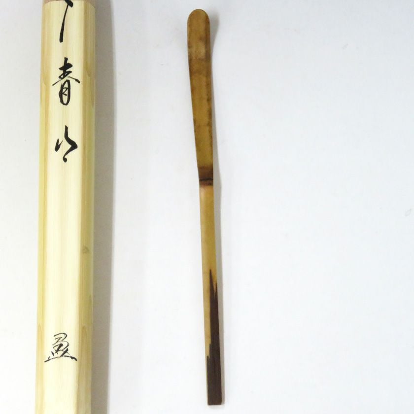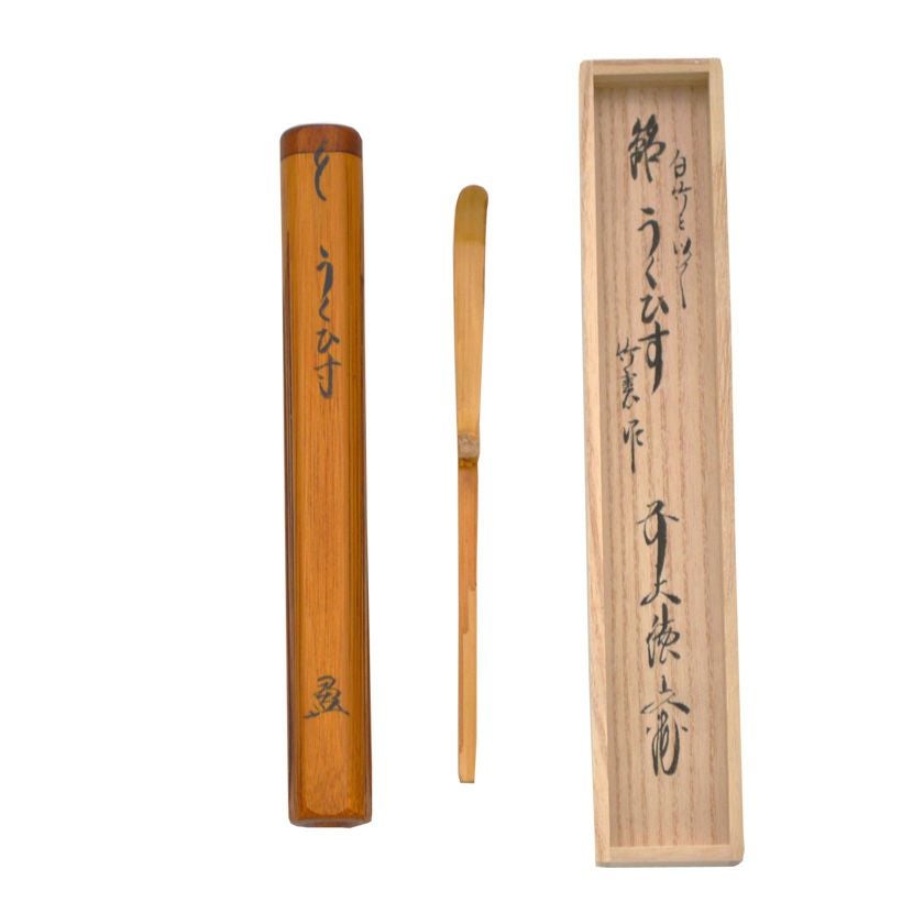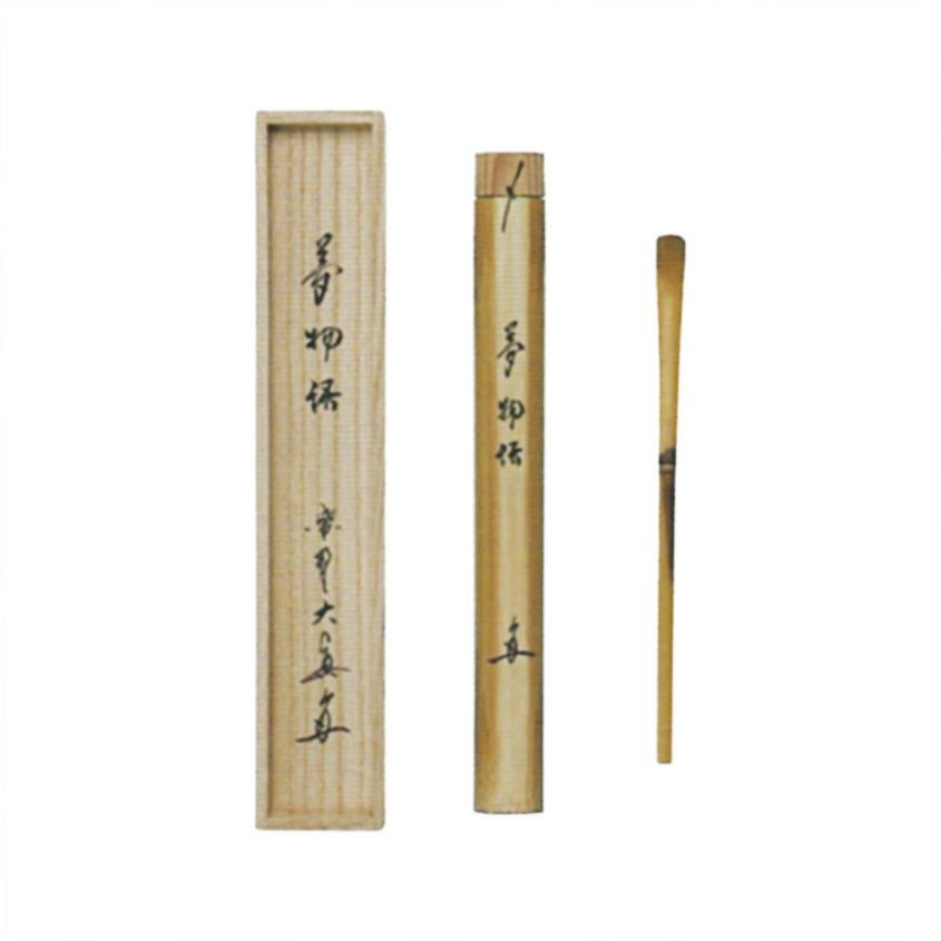 茶杓には銘がつけられ、茶策を納める竹筒にその銘を墨書することがあります。
