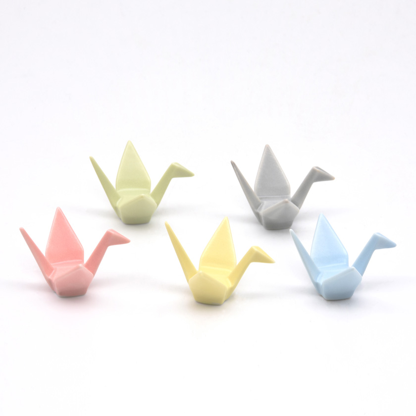 | 作家・作品名 | 箸置セット 5色折鶴(平和の祈り) | | 詳細 | --- | | 箱 | 化粧箱(紙) | | 寸法 | --- | | 商品番号 | 10694[stc010-305-06-17] | | 注意 | ●商品の質感・色は、お客様のご使用のモニターやブラウザなどの環境により、実物と異なる場合がございます。ご了承ください。