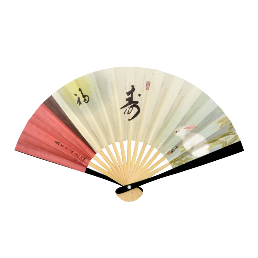 茶道具 扇子(せんす) 扇子 5寸 黒塗 竹に白兎 積應師墨跡写「福寿」 (裏面:千家十職) 干支 曽根幸風画
