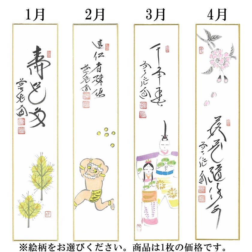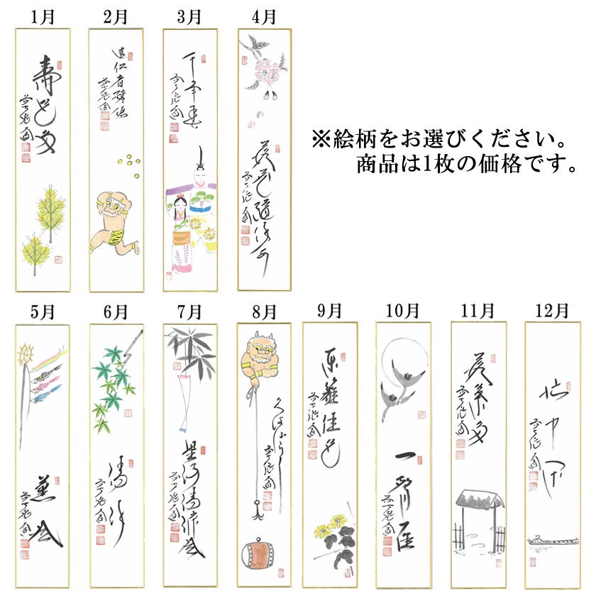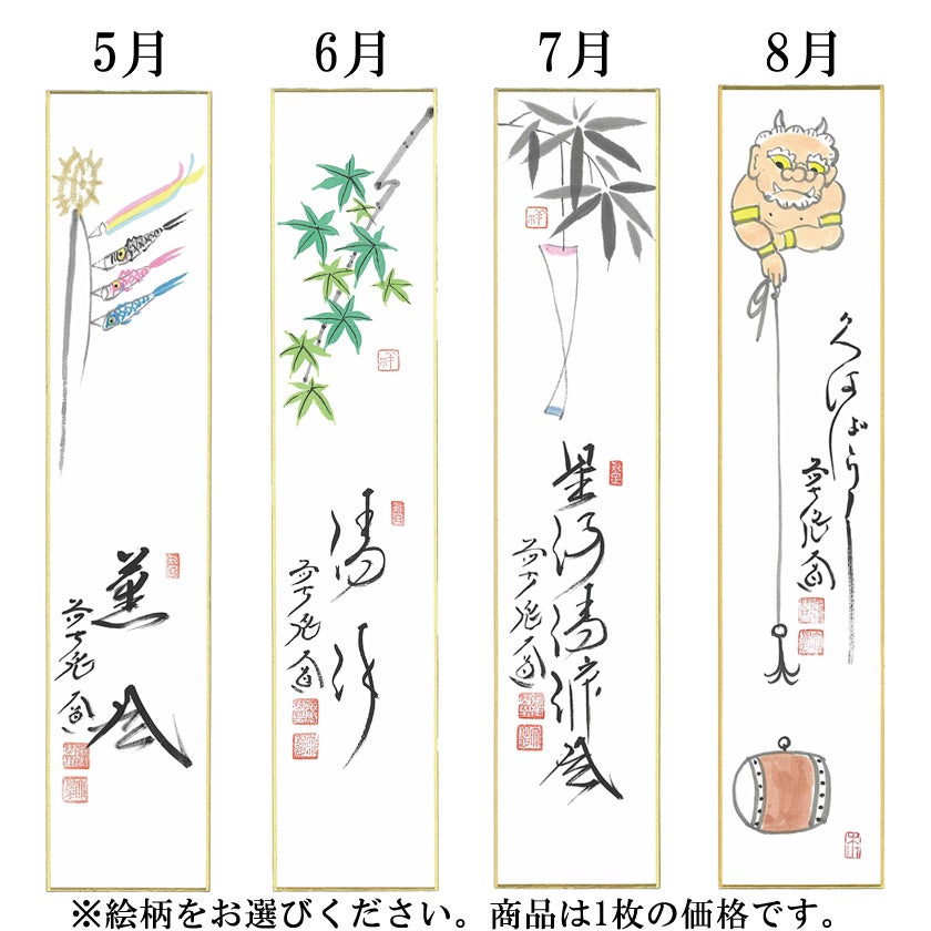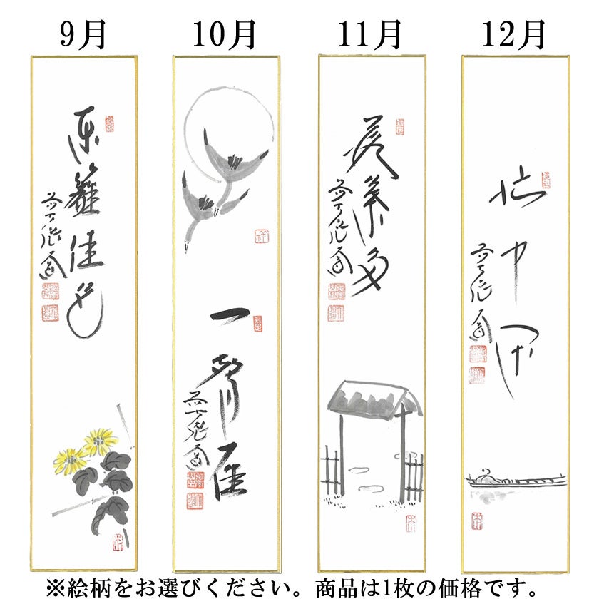 他の画像を見る 茶道具 短冊(たんざく)・短冊掛(たんざくかけ) 画賛短冊 大徳寺派極楽寺 西垣大道師 1月~12月から絵柄をお選びください。 詳細を見る お気に入りに登録する (0) 価格 ¥ 5,665 税込